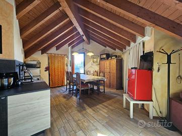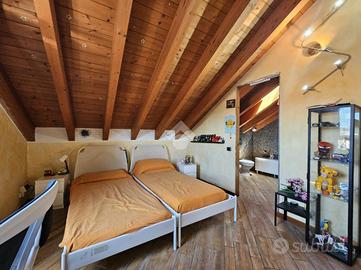 Da scala interna si accede alla mansarda ben rifinita e accogliente grazie alle travi a vista. L'ambiente è stato suddiviso per creare due ambienti separati e un bagno. Anche questo piano è dotato di un balcone.