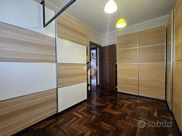 All'ingresso un piccolo disimpegno conduce al bagno finestrato con doccia, cucina abitabile con piccolo balcone, ampio e luminoso soggiorno e uscita sul terrazzo. Da un altro disimpegno si accede alle due camere da letto e al secondo bagno finestrato con doccia.
