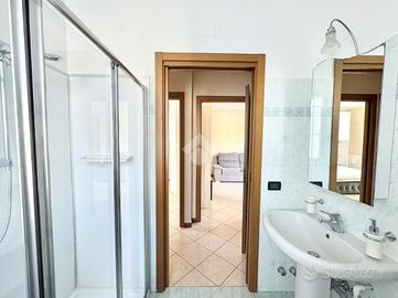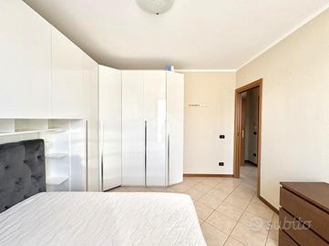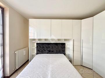 Un piccolo disimpegno porta alla zona notte, dove si trovano una camera matrimoniale completamente arredata, una cameretta e un bagno finestrato con box doccia.