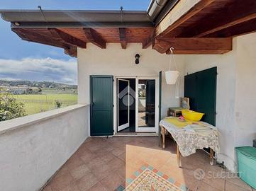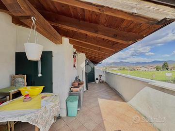 Torbiato di Adro: Proponiamo in vendita un raffinato trilocale dal fascino esclusivo, valorizzato da eleganti travi a vista che conferiscono agli ambienti un'atmosfera calda e ricercata. L'ingresso si apre su una luminosa zona living con soggiorno e cucina a vista, uno spazio armonioso e accogliente, ideale per momenti di relax e convivialità, caratterizzato da uno stile contemporaneo e curato nei dettagli. Un funzionale disimpegno accompagna alla zona notte, composta da una spaziosa camera matrimoniale, una cameretta e un bagno moderno con doccia multifunzione, rifinito con materiali di gusto attuale. Completa la proprietà un pratico locale lavanderia, pensato per garantire ordine ed efficienza nella quotidianità. All'esterno, un grazioso terrazzo privato rappresenta lo spazio ideale per piacevoli momenti all'aria aperta, mentre il giardino di proprietà offre un'oasi verde riservata e rilassante. L'immobile è inoltre dotato di autorimessa singola, sinonimo di comodità e sicurezza. Attualmente in fase di frazionamento. Assenza di spese condominiali. La posizione, tranquilla ma ben collegata ai principali servizi, rende questa soluzione perfetta per chi è alla ricerca di un'abitazione elegante, funzionale e pronta da vivere. Una proposta di pregio, dove stile, comfort e qualità si fondono in perfetto equilibrio. Per ulteriori informazioni, rivolgersi in agenzia.