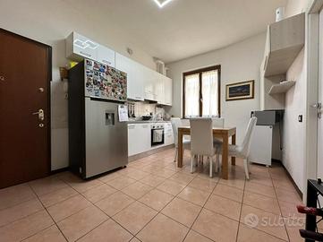 AGNADELLO: In centro paese, proponiamo in vendita appartamento di tre locali e servizi con cantina e posto auto. L'abitazione si trova al primo piano della palazzina, edificata nel 2003. L'ingresso si apre sulla zona giorno composta da un unico locale con angolo cottura. Il disimpegno serve la zona notte composta da due camere da letto e bagno con doccia. Dalla camera da letto matrimoniale si ha accesso ad un balcone di quasi 4 mq con esposizione a ovest. Completano la proprietà la cantina al piano terra e il posto auto scoperto.