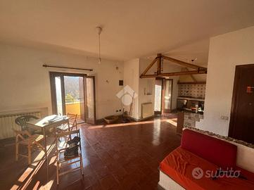 Direttamente su strada provinciale proponiamo in vendita appartamento in villa trifamiliare. L'immobile, situato al secondo piano, è composto da ampio salone con cucina abitabile, due camere da letto e due bagni. Completano la proprietà due balconi. Giardino condominiale, ottima esposizione, posti auto scoperti. Possibilità di acquistare un box auto