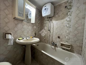 La soluzione è composta da un cucinotto, una sala da pranzo, un soggiorno con affaccio sul balcone, una camera e un bagno con vasca.