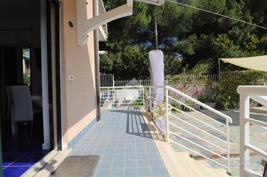 In Via delle quattro stagioni, all'interno del parco 'Tramonto d'oro', a circa 700 metri dalle spiagge attrezzate, appartamento al piano terra con ampio spazio esterno e ingresso indipendente. La soluzione si divide in soggiorno con angolo cottura, due camere da letto e bagno finestrato con box doccia. Una balconata angolare rende luminosi tutti gli ambienti. La corte esterna di proprietà esclusiva che misura circa 130 metri quadri rappresenta il valore aggiunto all'immobile e potrà essere attrezzata con gazebo, barbecue per godere di momenti speciali all'aperto in totale relax. L'appartamento è stato recentemente ristrutturato, ed è dotato di porta blindata, infissi in doppio vetro camera e aria condizionata per garantire comfort in ogni stagione. A completare la proprietà è presente un comodo posto auto assegnato. Grazie alle caratteristiche elencate la casa rappresenta un'ottima opportunità per chi cerca una residenza in una zona tranquilla, ma ben collegata ai servizi principali.