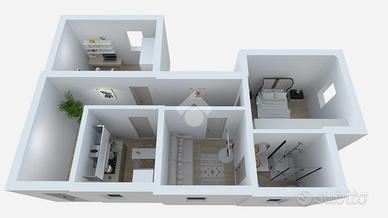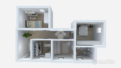 L'immobile si sviluppa su un unico livello e offre spazi ben distribuiti. L'appartamento si compone di tre locali: un luminoso soggiorno, perfetto per momenti di relax e convivialità, una cucina abitabile che invita a sperimentare nuove ricette, e due camere da letto che garantiscono comfort e privacy. Il bagno con doccia, pratico e ben organizzato, completa la proprietà.