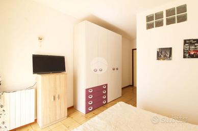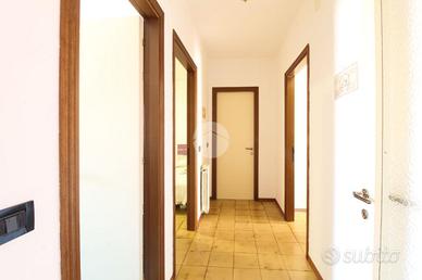 Ingresso su un luminoso soggiorno con angolo cottura che affacciano su un terrazzo abitabile, un disimpegno divide la zona notte con due camere matrimoniali di cui una con una stanza che può essere adibita a cabina armadio che affaccia su un balcone, ripostiglio e un bagno con box doccia idromassaggio e finestra.