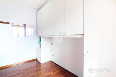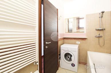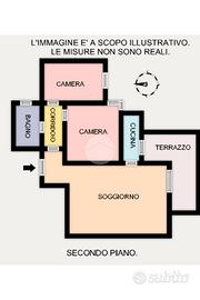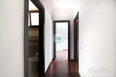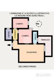 L'appartamento è composto da ingresso su un ampio soggiorno con cucinotto che affacciano su un terrazzo esposto a sud-est. Un disimpegno divide la zona giorno dalla zona notte con due camere e un bagno con vasca e finestra.