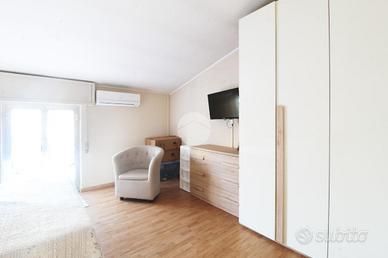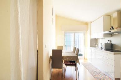 La zona notte composta da una spaziosa camera matrimoniale, anch'essa con il suo balcone privato, un' altra camera e un bagno moderno con box doccia e finestra, che offre ulteriore accesso a un altro balconcino.