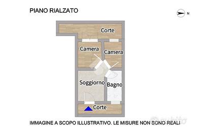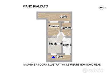 La soluzione è così composta: ingresso con accesso tramite una corte esterna pavimentata, su soggiorno con angolo cottura; due camere da letto matrimoniali, di cui una con accesso ad un'altra corte esterna pavimentata, ed un bagno finestrato con box doccia.