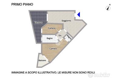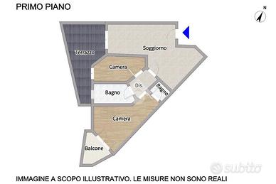 La soluzione è così composta: ingresso su accogliente soggiorno con angolo cottura e accesso al terrazzo abitabile; dal disimpegno si accede alla zona notte composta da: una camera matrimoniale con balcone e bagno ad uso esclusivo; una seconda stanza con accesso al terrazzo abitabile ed un ulteriore bagno finestrato con box doccia.