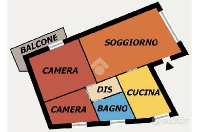 L'immobile si sviluppa come segue: Ingresso in Zona Giorno composta da un Ampio e Luminoso Soggiorno e da una Spaziosa Cucina Abitabile. Tramite Disimpegno si accede nella Zona Notte dove troviamo una Generosa Camera Matrimoniale con Balcone, una Comoda Camera da Letto ed un Bagno Finestrato con Vasca.