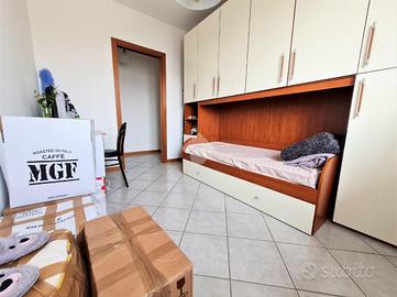 Un disimpegno conduce alla zona notte, dove troviamo un bagno finestrato con vasca e due camere da letto: una singola ma comunque spaziosa, e una matrimoniale, quest'ultima con accesso a un secondo balcone privato.