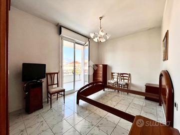 L'immobile, in parte ristrutturato, si trova al piano alto di un edificio dotato di ascensore. E' composto da un ingresso sul comodo disimpegno che conduce alla zona giorno con sfogo diretto sull'ampio terrazzo ideale per pranzi estivi e momenti di relax, alla prima comoda camere da letto, al bagno finistrato, al ripostiglio ed alla camera matrimoniale con terrazzo privato.