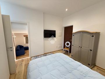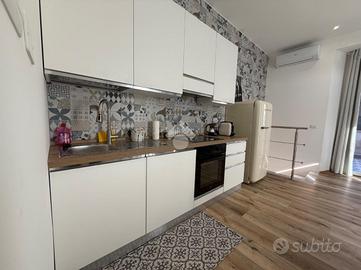 Il giardino piastrellato privato rappresenta un'oasi di tranquillità, perfetta per momenti di relax all'aperto. L'appartamento è dotato di impianto di aria condizionata e riscaldamento autonomo, assicurando un ambiente confortevole in ogni stagione.