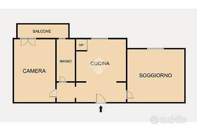 L'immobile è composto da ampio ingresso , soggiorno , cucina abitabile con dispensa , un'ampia camera da letto matrimoniale con uscita sul balcone ed un bagno finestrato.