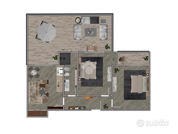 L'immobile è composto da un ingresso , una camera perfetta come zona giorno in open-space con angolo cottura da cui si accede all'ampio terrazzo vivibile , due camere da letto di cui una con balcone , bagno finestrato ed un ripostiglio.