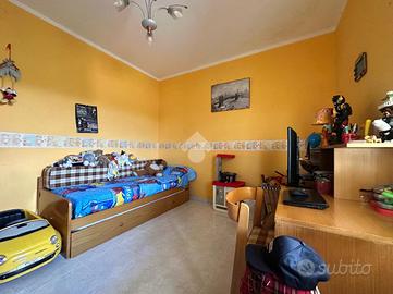 La zona notte comprende una camera matrimoniale e una cameretta, perfette per una famiglia o per chi desidera uno spazio aggiuntivo per ospiti o studio. Il bagno, finestrato e dotato di doccia, garantisce comfort e funzionalità.