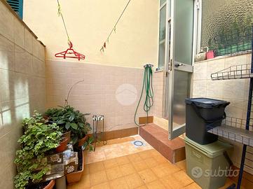 Dalla cucina è possibile accedere ad una veranda chiusa a vetrate e poi ad un cortile di proprietà. Questo sfogo esterno garantisce un ottimo spazio per poter mangiare all'aperto d'estate in totale riservatezza.