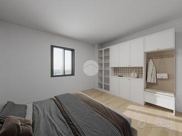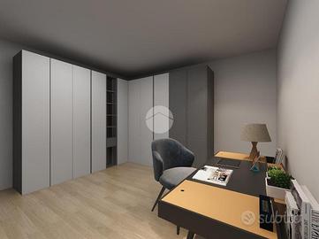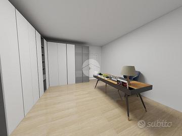 Dal soggiorno invece accediamo ad un disimpegno dove abbiamo un'altra camera matrimoniale, due bagni di cui uno finestrato e uno cieco e una cabina armadio trasformabile in altra camera da letto.