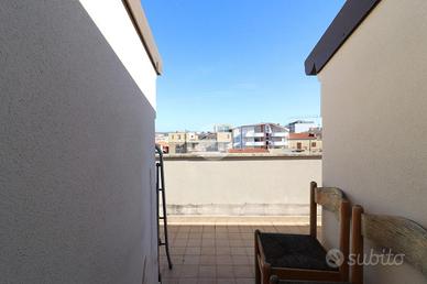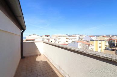 In pieno centro ad Alghero, in zona servita e a due passi dal centro storico, si propone in vendita un appartamento situato al quinto e ultimo piano di un edificio recente e moderno, dotato di ascensore. All'ingresso dell'appartamento troviamo la zona giorno, molto ampia e comoda, composta da un soggiorno sulla sinistra e da una zona cottura/pranzo sulla destra. Da qui è possibile accedere a un terrazzo abitabile, ideale per mangiare all'aperto nelle giornate calde estive e primaverili. Sulla sinistra tramite un piccolo corridoio accediamo alla zona notte. Qui troviamo il bagno, completo di tutti i sanitari, con doccia comoda e angolo per lavatrice e asciugatrice. Proseguendo nel corridoio troviamo da un lato la camera singola, abbastanza spaziosa e dall'altro la camera matrimoniale. Tra le due camere una porta finestra permette l'accesso al balcone sul retro della palazzina; da qui è possibile vedere uno spicchio di mare e di Fertilia. In ogni stanza troviamo sul tetto delle finestre vasistas; nel bagno e nella sala si aprono elettricamente, mentre nelle due camere manualmente ma facilmente sostituibili. Al piano seminterrato (accessibile anche con l'ascensore) completano la proprietà un comodo garage con una piccola cantina accessibile dall'interno del box e una seconda cantina comoda con accesso separato. L'aria condizionata assicura comfort in ogni stagione. Questa soluzione abitativa rappresenta un'opportunità interessante per chi cerca una residenza moderna e ben collegata, in una zona tranquilla e servita.