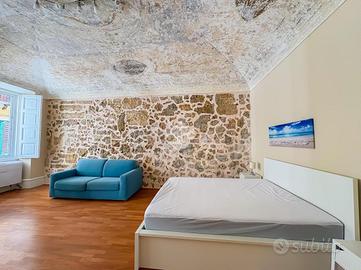 L'immobile che vi presentiamo si trova nel cuore del centro storico di Alghero, in una delle vie più caratteristiche e vivaci, a pochi passi da Piazza Civica e dai Bastioni Cristoforo Colombo. L'appartamento è situato al primo piano di una palazzina dell'Ottocento che ha saputo conservare nel tempo il fascino e il carattere originari dell'epoca. L'ingresso si apre su un pratico disimpegno che distribuisce armoniosamente tutti gli ambienti. La zona giorno è composta da un accogliente soggiorno con angolo cottura, funzionale e ben organizzato. La zona notte comprende due ampie camere matrimoniali, una delle quali di ben 29 mq, ideale come suite padronale. Completano la proprietà due bagni finestrati: uno con box doccia e l'altro con vasca e parete doccia. L'appartamento è stato oggetto di una ristrutturazione totale che ha interessato impianti, pavimenti e infissi, coniugando comfort moderni e perfetta armonia con il contesto storico. Attualmente adibito a locazioni turistiche nel periodo estivo, rappresenta anche un'ottima opportunità come elegante casa vacanza o come prima abitazione, grazie alla generosa metratura e alla posizione esclusiva.