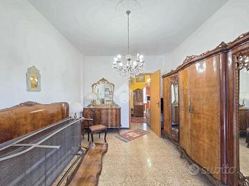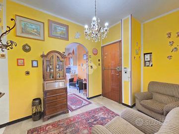 Il condominio che ospita l'immobile è stato edificato negli anni '70 e, recentemente è stato oggetto di una completa ristrutturazione del tetto le cui spese sono ancora detraibili. Posizionato al primo piano e servito dall'ascensore, l'appartamento gode di una doppia esposizione che garantisce una piacevole luminosità dal mattino fino al tramonto. Il primo locale, attualmente adibito a soggiorno, è raggiungibile dall'ampio disimpegno di ingresso che consente l'accesso a tutti i locali. Percorrendo il disimpegno è possibile arrivare alla cucina abitabile. Particolarmente lineare nelle sue pareti, quest'ultima e' facilmente incorporabile all'ampio disimpegno di ingresso abbattendo il muro che le divide. Il balcone accessibile della cucina ospita il motore del climatizzatore che funge anche da pompa di calore. Attraverso l'antibagno è possibile utilizzare il servizio igienico, arricchito dalla finestra e all'interno del quale trova spazio la vasca da bagno. La seconda camera da letto, anch'essa matrimoniale e valorizzata dal secondo balcone, è adiacente al soggiorno ed affacciano sul lato principale del condominio. A completare la proprietà del piano, oltre all'antifurto volumetrico recentemente installato, è il comodo e funzionale ripostiglio. L'immobile si presenta da personalizzare e, le eventuali spese di ristrutturazione sono detraibili al 50%. La tapparella nella cucina è già stata motorizzata. Al piano interrato, è ubicata la cantina di proprietà. Libero da subito, l'appartamento è posizionato in una zona particolarmente comoda ad ogni servizio. Scuole, supermercati e mezzi pubblici sono praticamente sotto casa.