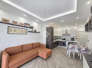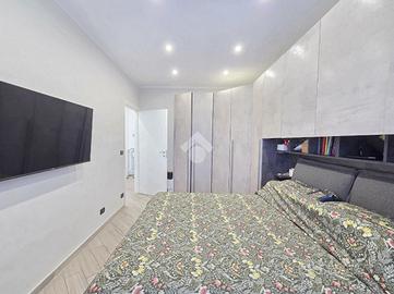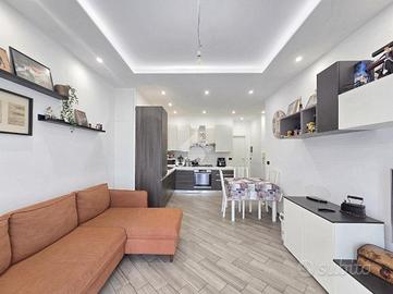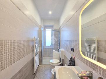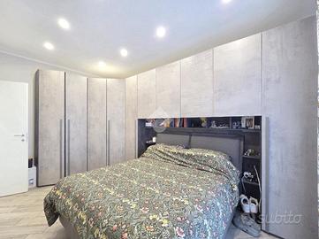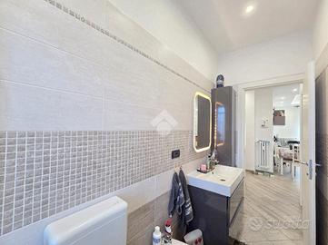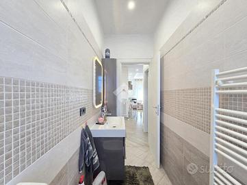 La completa e attenta ristrutturazione ultimata nel 2016, ha visto il rifacimento di tutti gli impianti e il completo stravolgimento degli spazi interni. La zona notte ha preso il posto della zona giorno e viceversa. L'ampio soggiorno living con la cucina angolare a vista, è valorizzato dalla contro soffittatura che ospita, faretti e strisce led. Il primo balcone, raggiungibile dalla zona giorno, affaccia sul lato principale del piccolo condominio. La camera matrimoniale è molto spaziosa, tanto da ospitare l'armadio con la cabina. Anch'essa è valorizzata dalla contro soffittatura con l'illuminazione incassata. Il secondo balcone accessibile da quest'ultima, è stato arricchito dalle tende invernali a rullo e dagli impianti per lavatrice ed asciugatrice. La ristrutturazione ha cambiato anche la struttura del bagno finestrato che, al momento vede i sanitari tutti sullo stesso lato e, al fondo la doccia in cristallo. La seconda camera da letto, adiacente al living, affaccia anch'essa sul lato principale del fabbricato. Tutta la pavimentazione dell'appartamento è omogenea al di fuori del servizio igienico ed è stata posata a 45°. I lavori hanno visto anche la sostituzione di tutti gli infissi esterni, compreso le tapparelle e la loro motorizzazione. E' stato predisposto anche l'impianto di antifurto. Posizionato al secondo ed ultimo piano, l'appartamento possiede una doppia esposizione ed è stato completamente coibentato rispetto al piano sottotetto. La cantina è al piano interrato. Vista la centralissima posizione in cui è ubicato, è particolarmente utile il box in autorimessa di proprietà sullo stesso piano della cantina. Comodo a qualsiasi servizio di prima necessità, sono raggiungibili a piedi anche mezzi pubblici e stazione ferroviaria, oltre a scuole e supermercati.