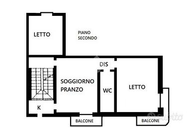 L'immobile si compone di ingresso su soggiorno-pranzo con affaccio su balcone, cucinino separato, disimpegno, bagno padronale e camera matrimoniale con secondo balcone.