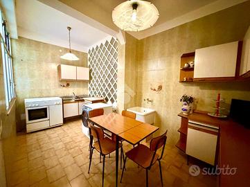 L'alloggio è composto da un ingresso con soggiorno dotato di terrazzino, due ampie camere da letto, una cucina abitabile e un bagno. Le condizioni generali sono buone.