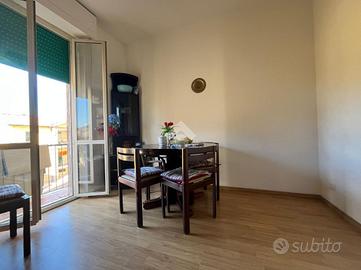 L'immobile è composto da ingresso, cucina abitabile servita da balcone, soggiorno servito da balcone, una camera matrimoniale, un bagno finestrato con doccia e un comodo ripostiglio, ideale per ottimizzare gli spazi.