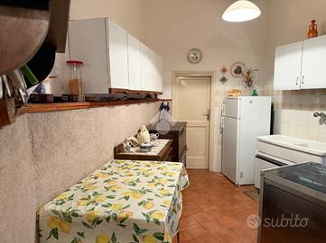 L'abitazione si apre su un ampio e luminoso soggiorno con camino, ambiente accogliente e funzionale. La cucina è abitabile e dotata di un comodo ripostiglio, dove è possibile realizzare anche un secondo bagno finestrato.