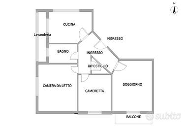 L'abitazione è composta da una spaziosa camera matrimoniale, una cameretta, bagno finestrato con doccia, cucina con veranda e salone luminoso con accesso diretto al balcone, ideale per godersi momenti all'aperto.