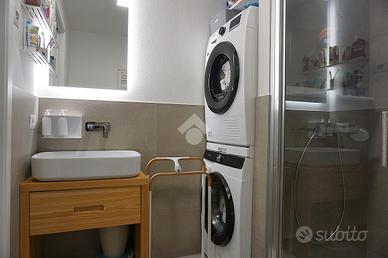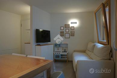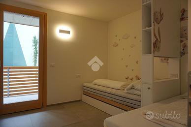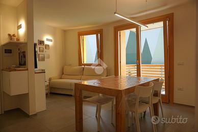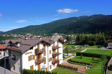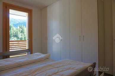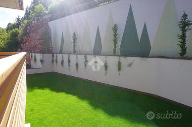 Prestigioso trilocale di 68 mq a secondo piano in contesto completamente ristrutturato composto da zona giorno con angolo cottura, due stanze, bagno, disbrigo e due balconi. Completo di cantina, posto auto coperto e posto auto esterno. Ampio giardino a disposizione dei condomini a copertura dei posti auto. Riscaldamento ibrido a metano-pompa di calore a pavimento, con pannelli fotovoltaici e solari, completo di batterie di accumulo. In posizione riservata e pianeggiante, ben esposta con ottima vista sulla Paganella.