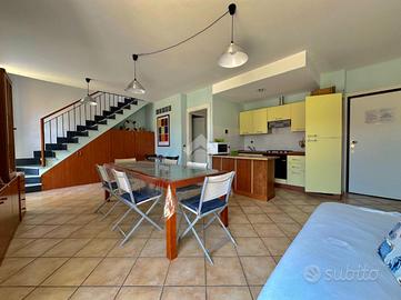 La soluzione disposta su due livelli, presenta al piano primo l'ingresso sulla luminosa zona giorno con angolo cottura da cui accedere al terrazzo ed un comodo bagno con doccia. Tramite una scala interna si accede al piano superiore dove troviamo due camere da letto ed il secondo bagno finestrato con doccia.