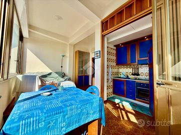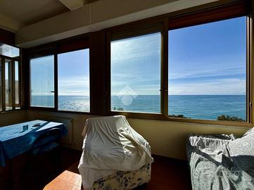 A 50m dalle spiagge, appartamento fronte mare con posto auto e cantina di proprietà. La soluzione presenta l'ingresso sul disimpegno che conduce alla luminosa zona giorno con angolo cottura e vista mare, di seguito troviamo due camere da letto di cui una matrimoniale ed il bagno finestrato con doccia. Completano la proprietà il posto auto e la cantina che sono compresi nella cifra di proposta. Sono in corso i lavori di risanamento delle parti esterne del condominio, gia deliberate e pagate.