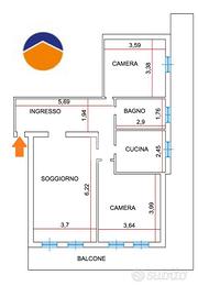 Varcando la soglia di casa si viene accolti da un comodo ingresso, che conduce a un luminoso soggiorno di circa 23 mq, caratterizzato da ampie porte finestre che permettono l'accesso a un balcone angolare che abbraccia l'abitazione su due lati, regalando luce naturale durante tutto l'arco della giornata.