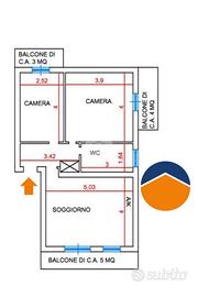 La zona notte comprende una camera matrimoniale di generose dimensioni, anch'essa servita da balcone privato, che garantisce luminosità naturale e sfogo esterno, e una cameretta, ideale come stanza per bambini, studio o camera ospiti, dotata di balcone dedicato,completa la soluzione un bagno finestrato servito da doccia e finestra.