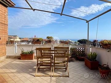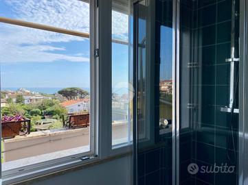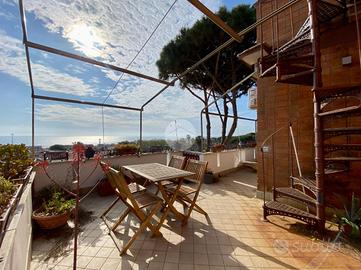Lido delle Sirene - via delle Muse - a circa 500 metri dallo stabilimento balneare 'La Scialuppa 2', proponiamo un appartamento posto al 3° piano con ascensore, attualmente non in uso. L'immobile è completamente ristrutturato e si distingue per una vista mare aperta e dominante, presente in ogni ambiente della casa, dove l'azzurro del mare crea un suggestivo contrasto con il verde circostante. Già dall'ingresso si viene accolti da una scenografica visuale sul mare, che accompagna e valorizza tutti gli spazi interni. La cucina, dotata di portafinestra con balcone, si affaccia direttamente sul mare, così come il soggiorno, particolarmente luminoso, che si apre su un ampio terrazzo panoramico: uno spazio ideale per pranzi all'aperto o momenti di relax con il mare sempre protagonista. La camera matrimoniale, anch'essa con balcone, offre un affaccio riservato e continuo verso il mare, rendendo l'ambiente particolarmente rilassante. Il bagno finestrato con box doccia completa il piano, anch'esso impreziosito dalla presenza della vista mare, elemento raro e distintivo. Tramite una scala a chiocciola si accede al superattico, un ambiente unico e versatile, con bagno ristrutturato e accesso ad un ampio terrazzo. Anche qui la vista mare è ampia e aperta, perfetta per godere appieno del panorama in totale privacy. L'immobile è dotato di condizionatore a pompa di calore e inserito in un contesto condominiale che dispone di piscina. Ideale sia come prima casa che come casa vacanze, rappresenta una soluzione unica per chi desidera vivere il mare quotidianamente, con scorci panoramici in ogni angolo della casa. INFORMAZIONI CATASTALI: -CATEGORIA: A/2; VANI: 5,5; RENDITA: 823,75 € INFORMAZIONI IMMOBILI: - INFISSI: doppio vetro/ alluminio - CONDOMINIO: circa 1.200,00 € annui comprensivi di: consumo dell'acqua, pulizie aree condominiali, manutenzione piscina condominiale, assicurazione, parcella amministratore. - ANNO COSTRUZIONE: 1968 - STATO IMMOBILE: completa