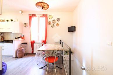 Al piano primo l'appartamento offre spazi ben distribuiti con due ampie camere da letto matrimoniali, una luminosa cucina ed il primo bagno; le scale ci conducono alla taverna arredata a soggiorno dove troviamo un secondo bagno.