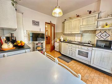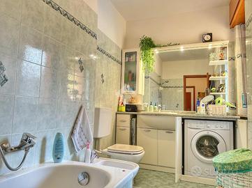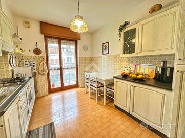 Il soggiorno ampio e arioso si apre su un balcone esposto a ovest, ideale per godersi la luce del pomeriggio e il tramonto. La cucina abitabile, pratica e ben organizzata, dispone di un secondo balcone rivolto a nord, perfetto per garantire una piacevole ventilazione naturale.