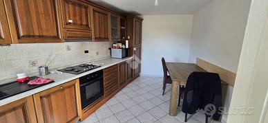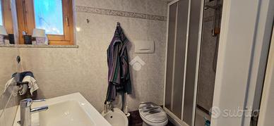 In Aosta, Frazione Excenex, a 7 km dal centro di Aosta. L'alloggio è in un contesto di due unità abitative. Il soggiorno è separato dalla cucina con l'uscita sul terrazzo. La zona notte ospita due camere con doppi servizi di cui uno al piano della zona giorno. Completa l'unità il posto auto, deposito, la cantina e l'area verde.
