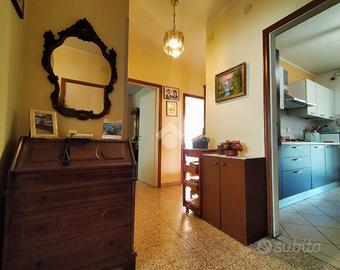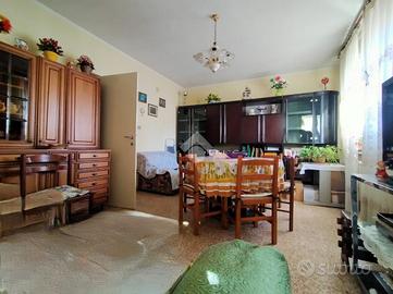 Aosta - Piazza Battaglione Cervino. Trilocale sito al secondo ed ultimo piano in contesto tranquillo e ben servito dai mezzi pubblici. La posizione strategica permette di raggiungere il centro di Aosta in pochi minuti, ed è ideale per le famiglie grazie alla vicinanza a scuole, palestre e aree verdi. L'immobile gode di una buona esposizione su tre lati, garantendo ambienti luminosi e spaziosi. È composto da un ingresso che si apre su un disimpegno, una cucina abitabile con balcone, un soggiorno con veranda, due confortevoli camere da letto, un bagno con doccia e due utili ripostigli. La proprietà é completa di un'ampia cantina e dispone di posto auto condominiale.