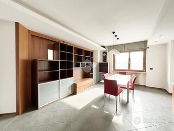 Situato al quinto ed ultimo piano, in posizione strategica tra il Centro, l'Università e l'Ospedale, luminoso appartamento grazie alla doppia esposizione. L'ingresso accoglie in una spaziosa zona living open-space con angolo cucina, resa unica da una parete in legno scorrevole: un elemento di design che permette di trasformare lo spazio in pochi istanti, creando una seconda camera da letto indipendente o ampliando il salone. Da qui si accede al primo balcone panoramico, perfetto per godersi la vista aperta al tramonto. La zona notte è una vera mini-suite padronale che garantisce la massima riservatezza, dotata di bagno privato e di un secondo balcone esclusivo per accogliere la luce del mattino. Un secondo bagno con doccia serve comodamente il resto della casa. Completano la proprietà una pratica cantina e la possibilità di acquistare un'autorimessa a parte. Una dimora pronta da abitare, caratterizzata da ambienti fluidi e dal prestigio silenzioso dell'ultimo piano.