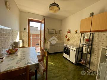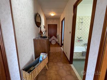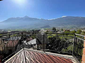 In Aosta, Regione Brenlo, l'alloggio è al secondo e ultimo piano con un'ottima esposizione a sud-est e nord. Il soggiorno è luminoso esposto a sud con l'uscita sul balcone. La cucina è separata con l'uscita sul balcone. La zona notte ospita due camere e bagno. Completa il posto auto assegnato, il box auto e la cantina. Il riscaldamento è semiautonomo a metano con termovalvole e contakilocalorie. Il tetto è stato rifatto nel 2025. L'acqua è centralizzata.