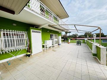 Terrazzo di 83 mq con accesso diretto dalla cucina con forno in muratura.