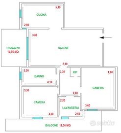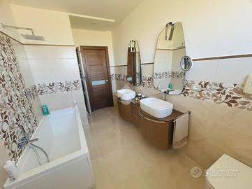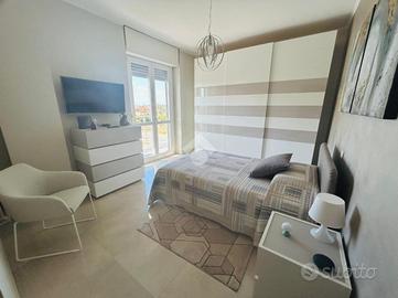 Salone di 31 mq e cucina abitabile di 15 mq con uscite sul balcone abitabile, 2 camere matrimoniali con uscite sul balcone, ampio bagno con doppio lavandino e vasca, stanza adibita a lavanderia di 5 mq (da poter utilizzare come altra camera da letto oppure come 2° bagno, avendo già tutti gli scarichi predisposti) e ripostiglio a muro.