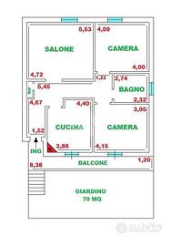 In zona tranquilla e ben servita, a pochi chilometri dal centro città, proponiamo in vendita un appartamento al piano terra rialzato di circa 110 mq situato in una piccola palazzina di sole due unità abitative. L'immobile è composto da ingresso, ampio salone, cucina abitabile con camino, due spaziose camere da letto, bagno e ripostiglio. La soluzione si presenta da ristrutturare, offrendo così la possibilità di personalizzare gli spazi secondo le proprie esigenze e il proprio gusto. Completano la proprietà una corte privata di circa 70 mq e un ampio box auto di 97 mq al piano seminterrato. Ideale per chi desidera indipendenza senza rinunciare alla vicinanza della città. Visionabile tutti i giorni previo appuntamento.