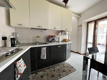 L'ingresso si apre su un comodo e luminoso soggiorno, separata ma adiacente troviamo una cucina abitabile con accesso diretto sul balcone.