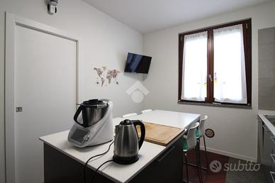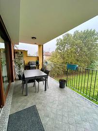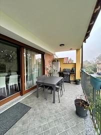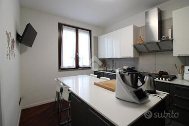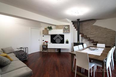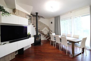 ARCORE - Nella esclusiva e riservata Zona Boschi, in una posizione panoramica che regala una vista aperta sul verde, proponiamo un elegante appartamento di tre locali in un una mini palazzina di recente costruzione, composta da sole sei unità abitative. L'appartamento, al primo ed ultimo piano, si estende su una superficie di circa 107 mq e si sviluppa su due livelli: l'ingresso introduce all'ampia e luminosa zona living, composta dal soggiorno con stufa a legna e con accesso diretto al terrazzo coperto di circa 20 mq, perfetto per chi ama vivere gli spazi esterni; dalla cucina abitabile e dal moderno bagno finestrato, con una doccia walk-in ampia e confortevole. Una pregiata scala in legno accompagna alla zona notte, formata dall'ampia camera da letto, dalla cameretta e da un secondo bagno finestrato. Quest'ultimo pensato per offrire momenti di vero relax, con una doccia walk-in e una splendida vasca idromassaggio incassata a pavimento. Completa la proprietà l'ampio box. Vi è inoltre la possibilità di acquistare tre posti auto privati ad € 15.000,00. L'immobile presenta finiture di pregio come porta blindata, porte interne bianche, infissi in legno doppi vetri, pavimentazione in parquet in tutta casa e travi a vista nella zona notte. Inoltre il soggiorno è caratterizzato da un'ampia finestra scorrevole con zanzariera e tapparella elettrica. L'appartamento è dotato di riscaldamento autonomo a pavimento, oltre ad avere la predisposizione per l'impianto di condizionamento e di antifurto. Questa soluzione abitativa è ideale per chi desidera vivere in un contesto recente, senza lavori da fare e con spese condominiali contenute, in una zona immersa nel verde e nella tranquillità, ma allo stesso tempo a pochi minuti dai principali collegamenti e servizi. La consegna dell'immobile avverrà entro 8/12 mesi dalla proposta. La nostra agenzia immobiliare si occupa di immobili in vendita e in affitto nel Comune di Arcore.