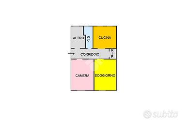 Entrando nell'appartamento si trova un ingresso che disimpegna i vari ambienti: sulla destra si sviluppano la camera e la sala. Sulla sinistra, dal disimpegno si accede allo studio, al servizio igienico finestrato e alla cucina abitabile. Frontalmente si trova un piccolo ripostiglio.